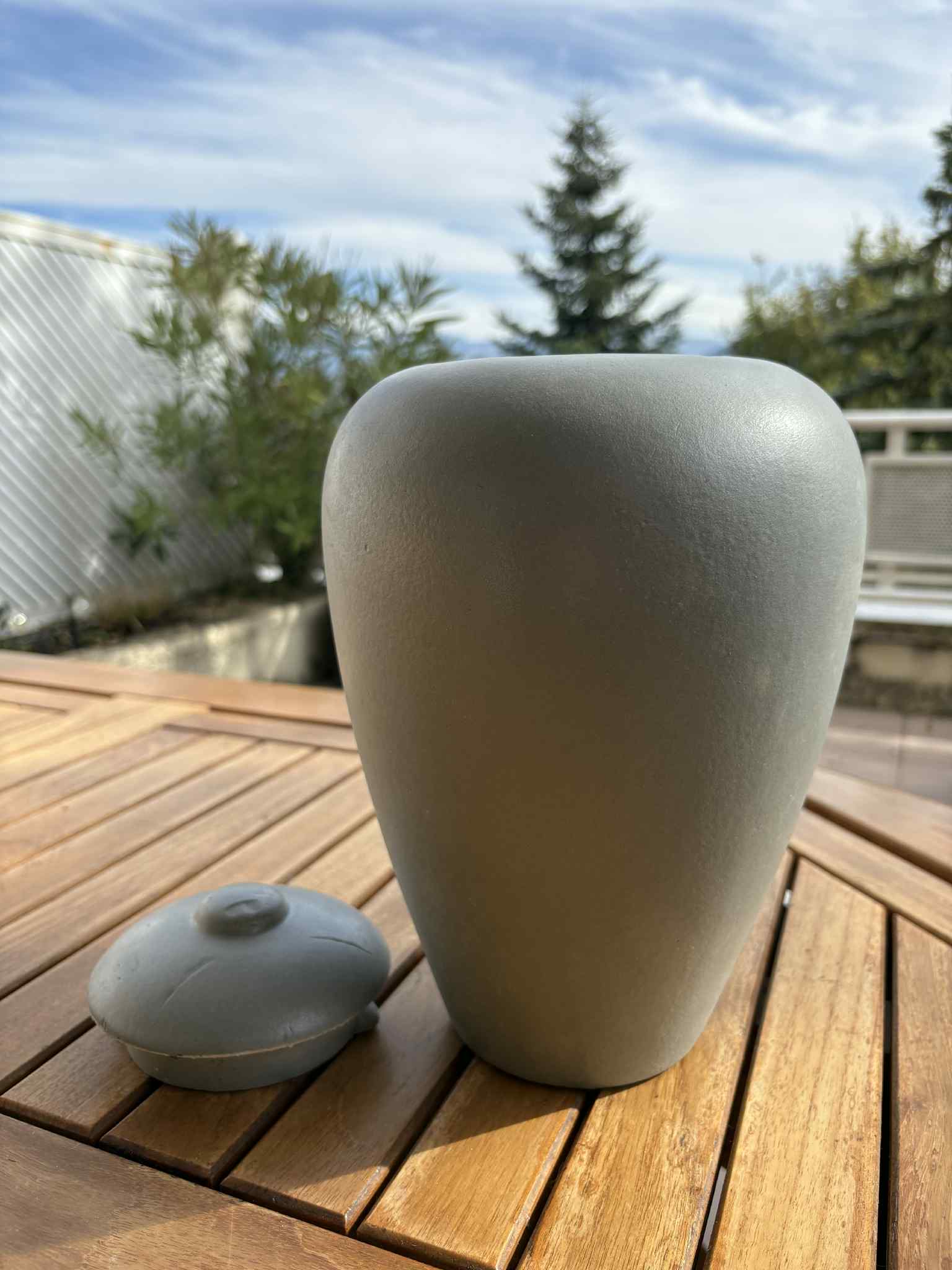 Esta urna biodégradable tiene un plazo de entrega de aproximadamente 10 días. Realizada a base de arcilla y componentes vegetales, este modelo de urna funéraire puede ser sumergida o enterrada, soluble en 2 días en el agua o 3 semanas en tierra. Esta urna bio se cierra con una tapa por encima mediante simple humectación con agua. La urna ecológica está diseñada para acoger las cenizas de un ser querido que pese hasta 150 kg antes de la cremación.